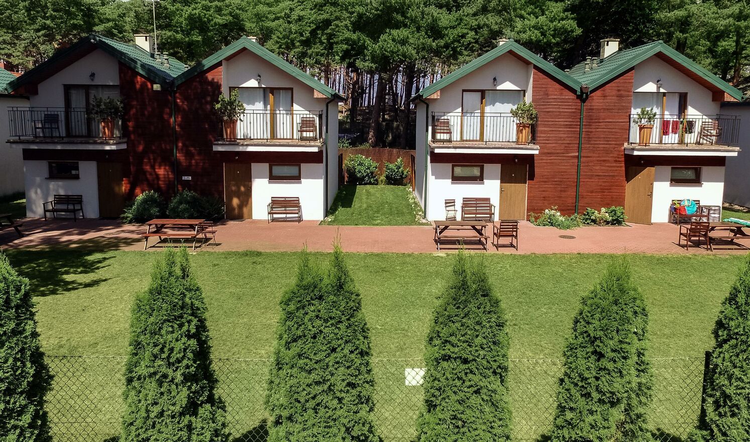 - 8 domków (4 bliźniaki) dwu piętrowych z centralnym ogrzewaniem gazowym, z kominkiem, aneksem kuchennym, łazienką. Wszystkie domki są opomiarowane w liczniki na prąd, wodę, gaz itp. W ostatnim czasie ok. 2 lata temu wymieniono we wszystkich domkach umeblowanie.