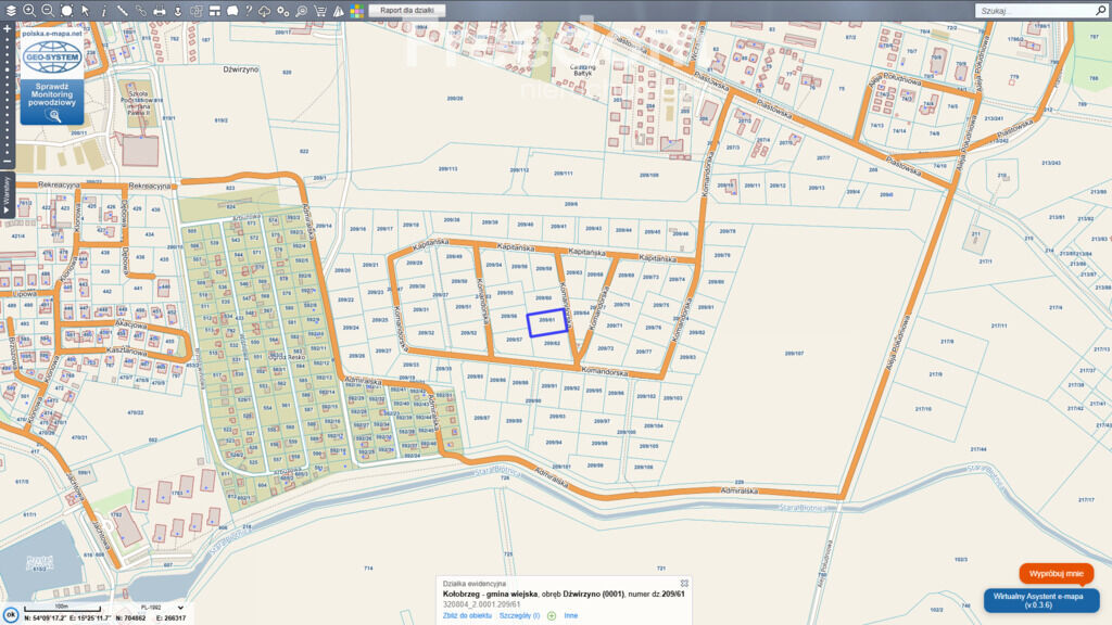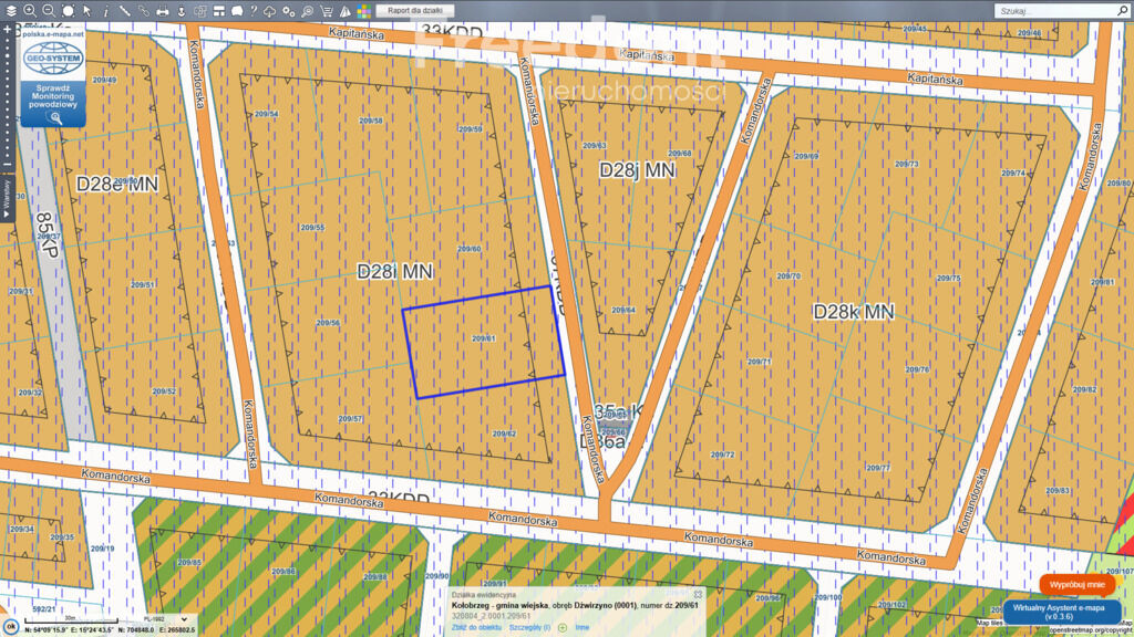 Opracowanie (mapy działek) wykonano na podstawie serwisu
